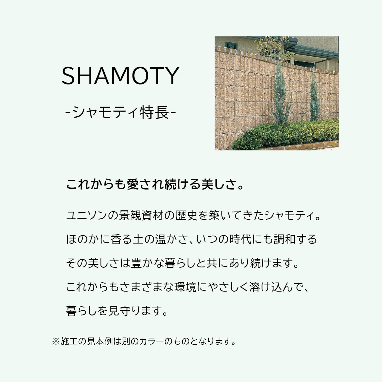 エクステリア景観材「シャモティ」は、豊かな自然を感じさせるナチュラルな雰囲気を演出します。ユニソンの景観資材の歴史を築いてきたシャモティは、ほのかに香る土の温かさや、どの時代にも調和する美しさが特徴です。