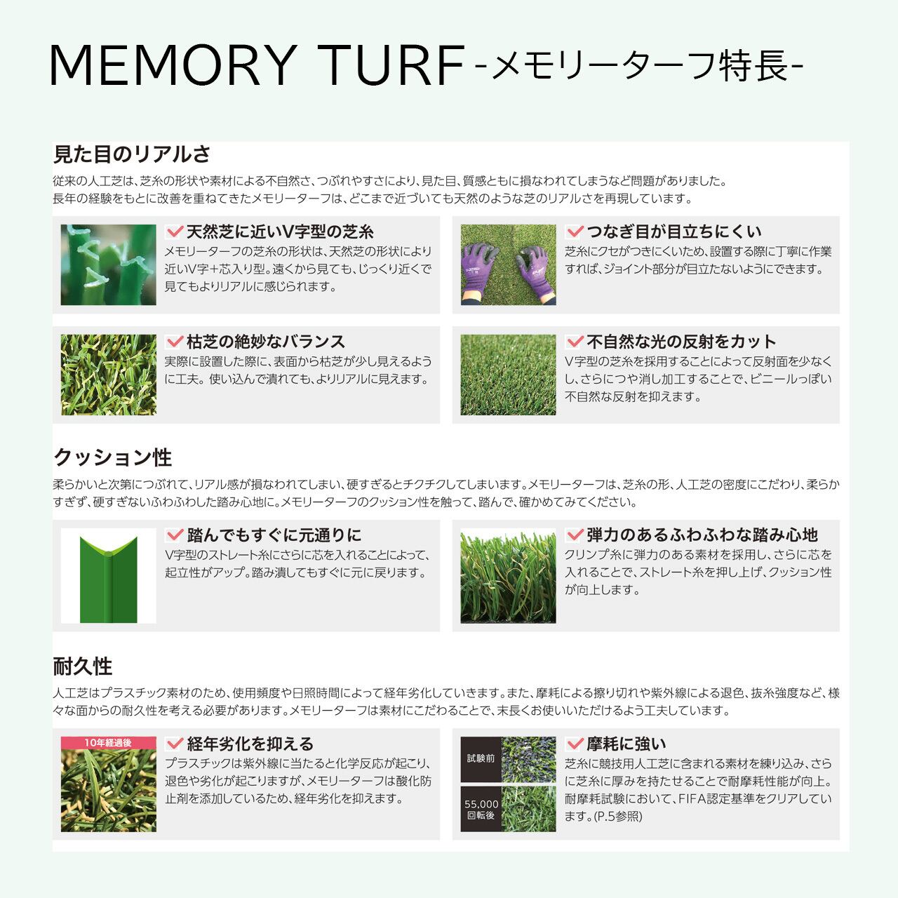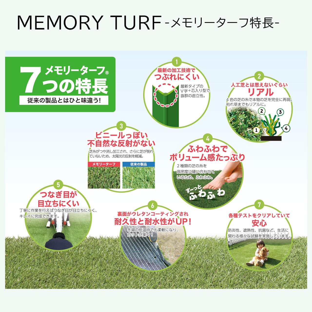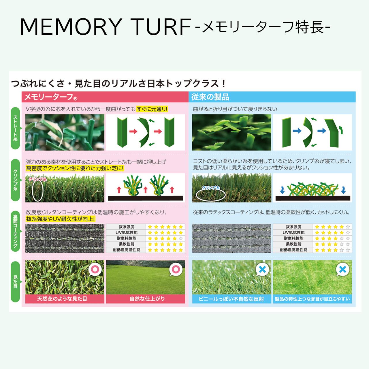 自然の草地のような心地よさや、手入れの煩わしさを解消したい方にぴったりなメモリーターフを、ぜひお試しください。